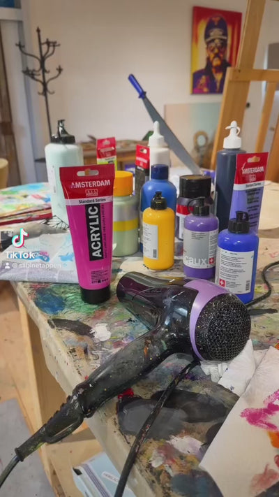 Heute arbeitet sie in ihrem eigenen Atelier und hat sich der experimentellen Acrylmalerei verschrieben.
