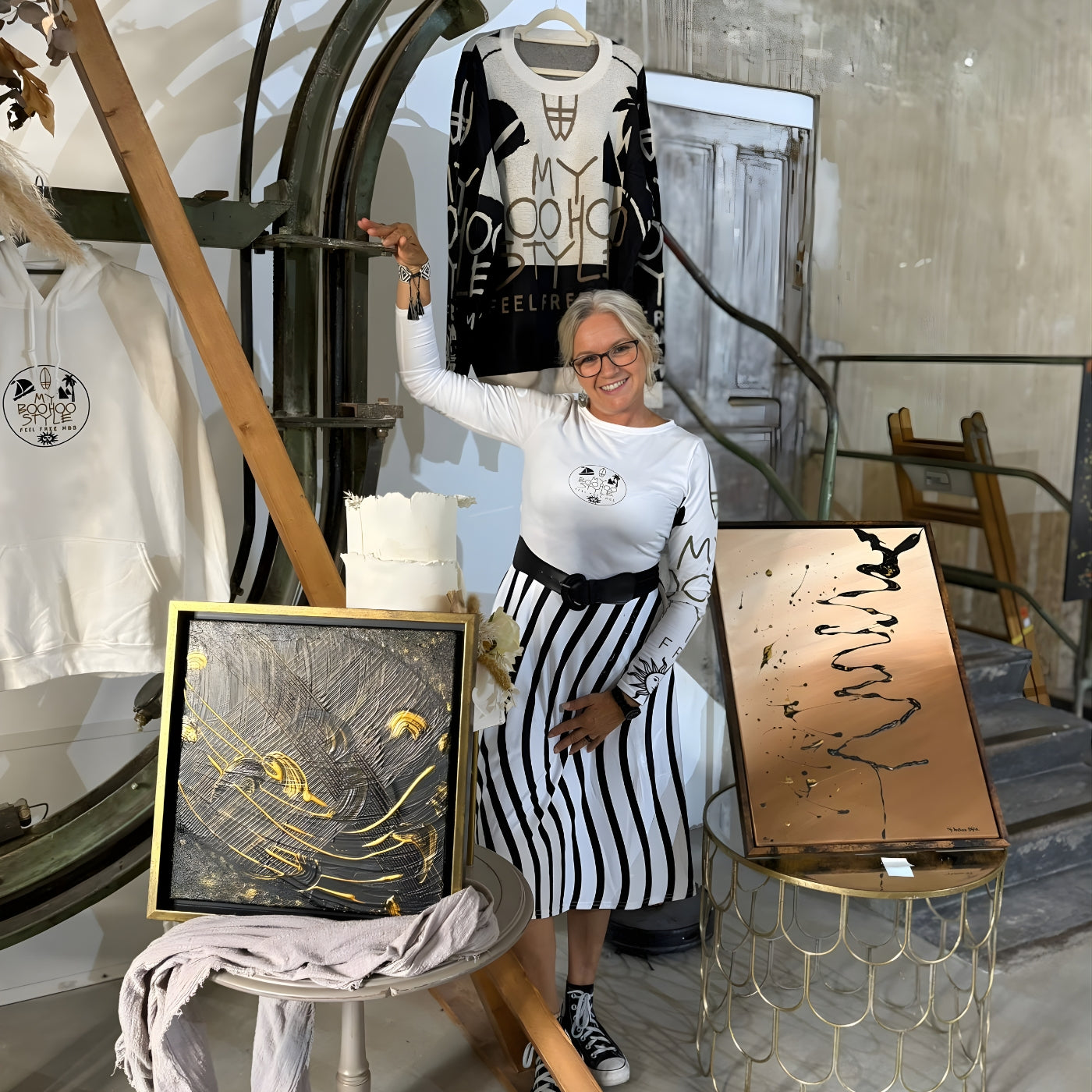 Im November 2024 eröffnete sie ihren ersten Online-Shop My Boohoo Style, in dem sie kreative Designs auf Kleidung verwirklicht. Ein Schicksalsschlag brachte sie kurze Zeit später zur Malerei: Nach dem Tod ihrer Mutter im Dezember 2024 begann sie im Januar 2025 mit der abstrakten Acrylmalerei auf Leinwand. Was zunächst ein Weg der Trauerbewältigung war, entfaltete sich rasch zu einem intensiven künstlerischen Schaffen, das ihr den Weg in die freischaffende Tätigkeit ebnete.