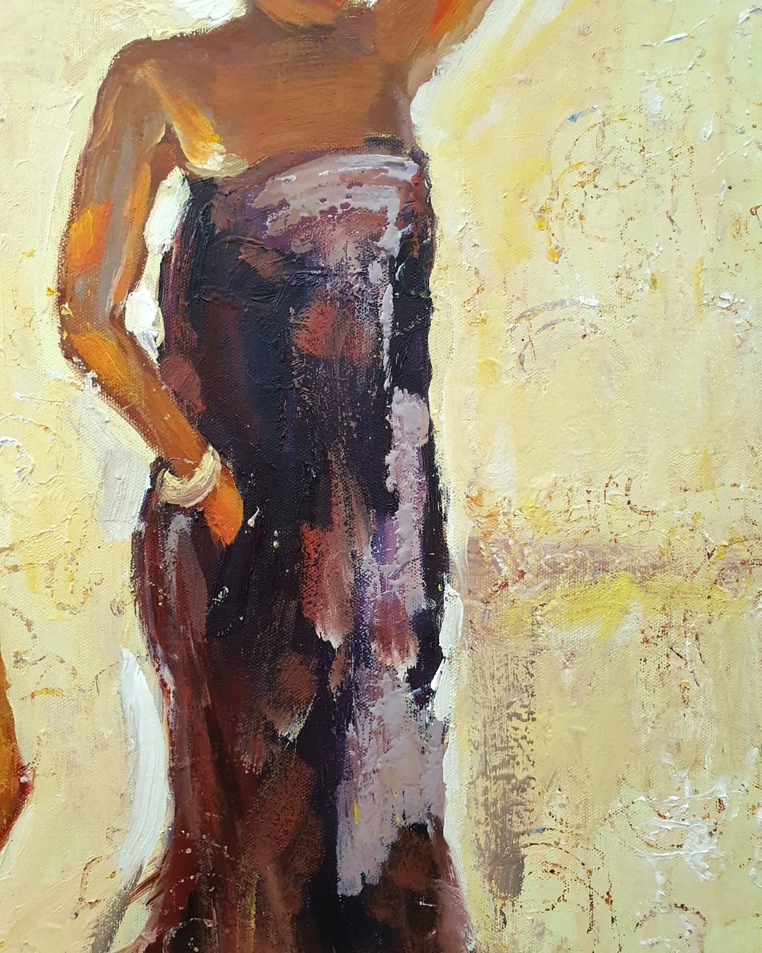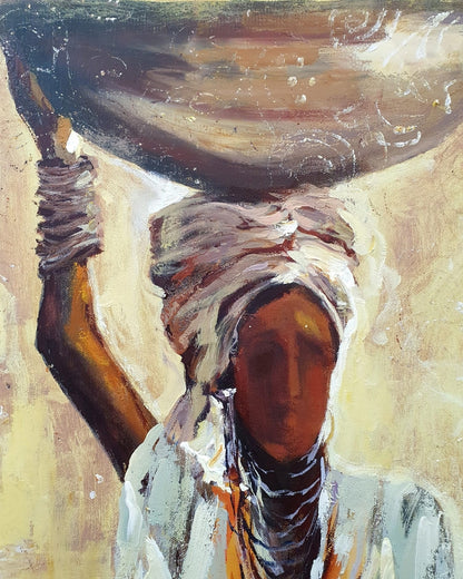 "Die Frauen" von Vadim Lazarev ist ein eindrucksvolles Ölgemälde (135 × 85 cm), das weibliche Stärke und Anmut in einer warmen, erdigen Farbpalette einfängt. Die reduzierte Darstellung der Gesichter lässt Raum für Interpretation, während fließende Pinselstriche und subtile Texturen Bewegung und Leichtigkeit vermitteln. Das Spiel aus Licht und Schatten verleiht der Szene eine fast meditative Tiefe. Ein ausdrucksstarkes, handsigniertes Kunstwerk mit kultureller Symbolkraft.