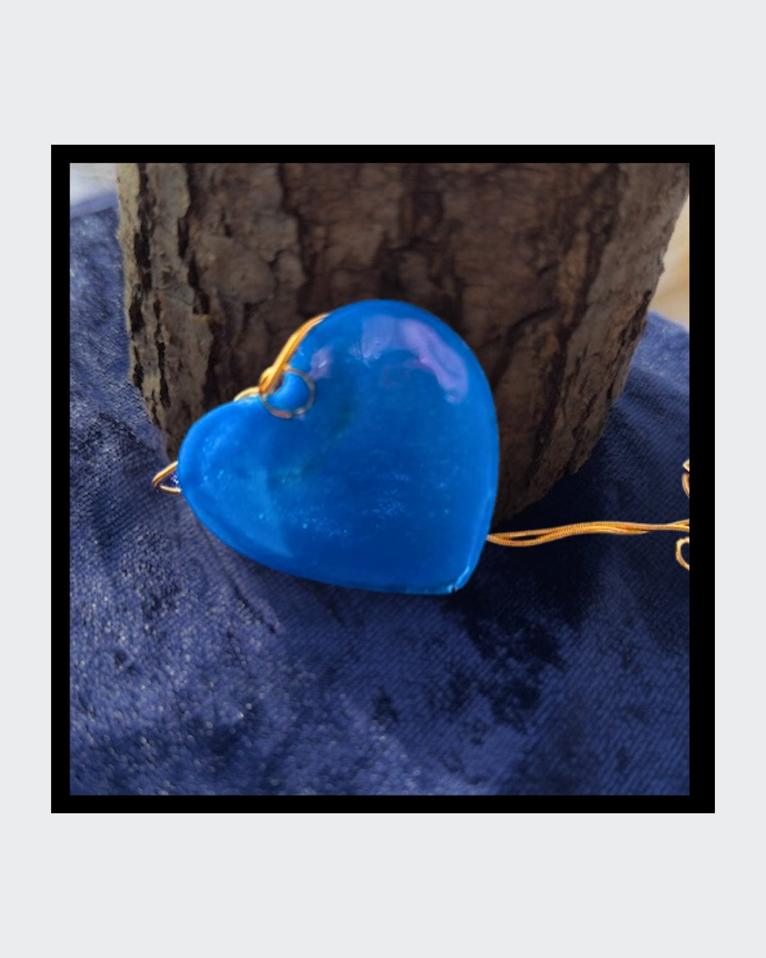 Koboldblaues Herz mit 18-karätigem Blattgold und Goldkette